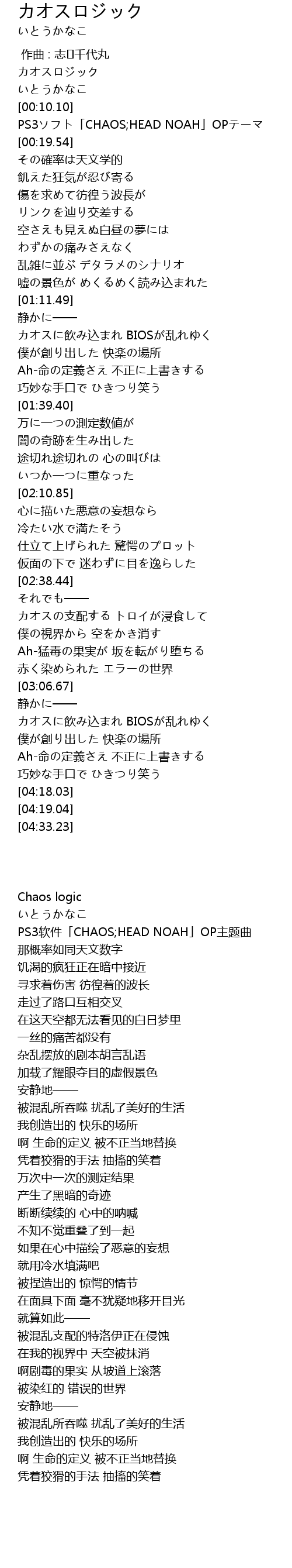 | [00:11.33] | PS3ソフト「CHAOS;HEAD NOAH」OPテーマ |