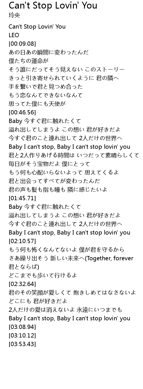 | [03:04.55] | Baby I can't stop, Baby I can't stop lovin' you |