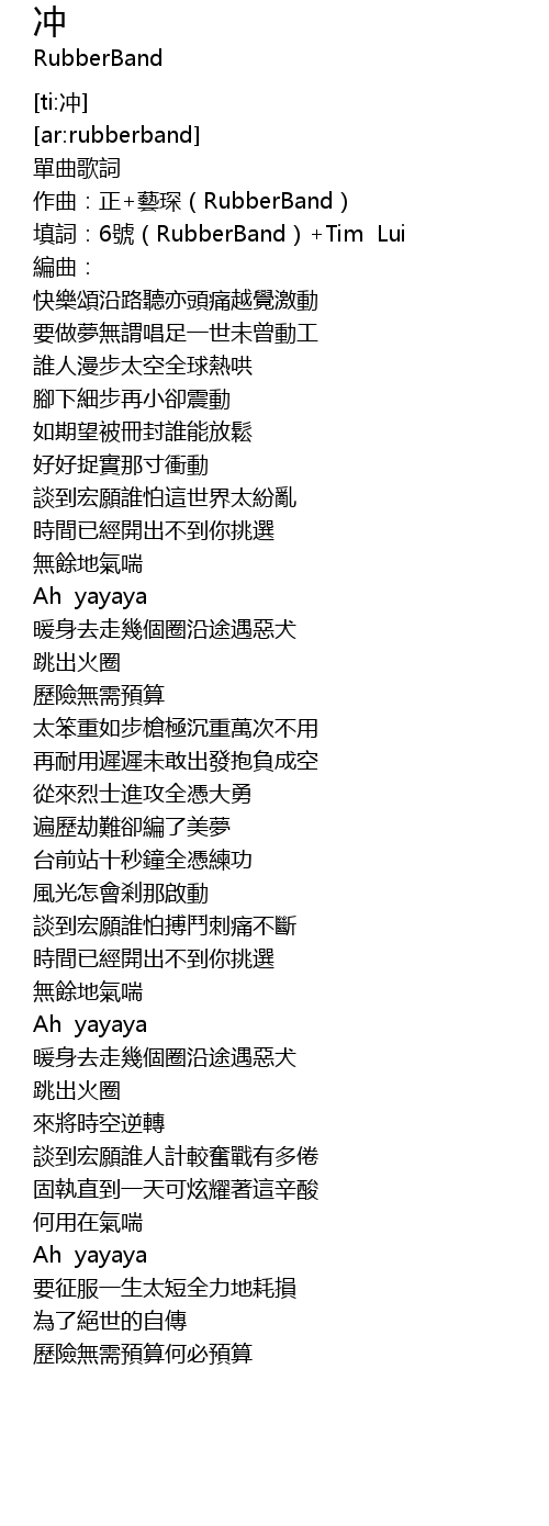 | [00:08.630] | 填詞:6號(RubberBand)+Tim Lui |