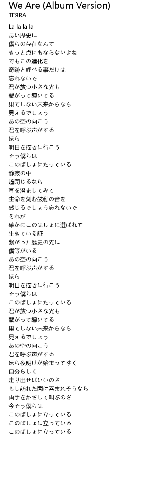 | Song | We Are (Album Version) |