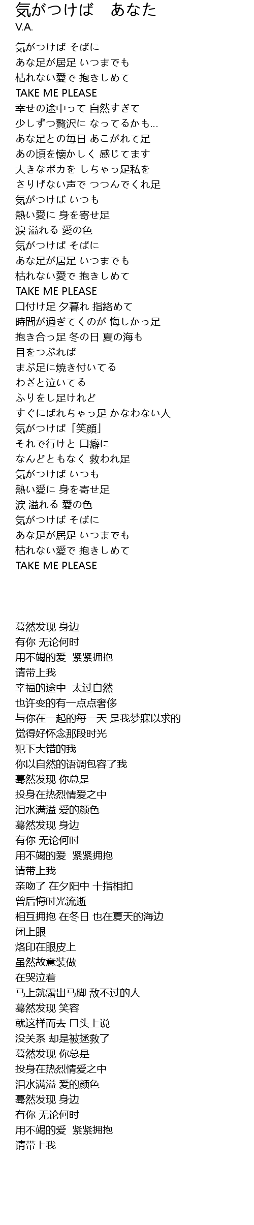 | [02:10.19] | 口付け足 夕暮れ 指絡めて |