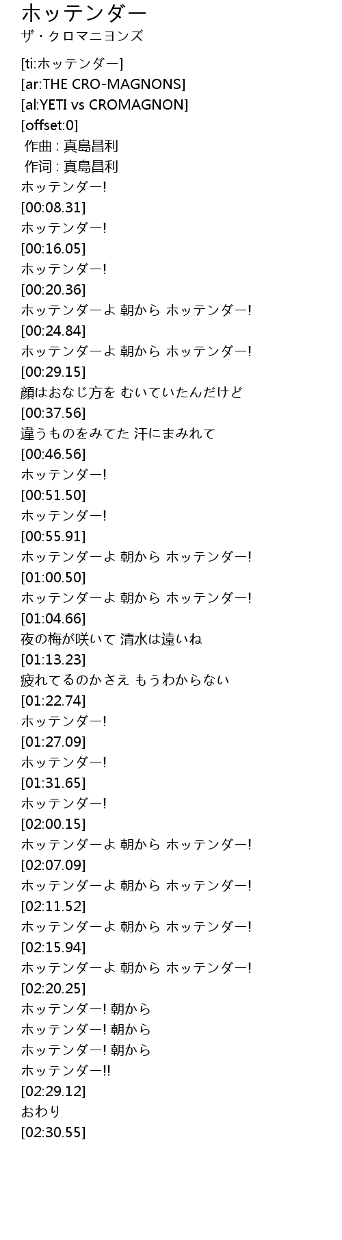| [02:16.69] | ホッテンダーよ 朝から ホッテンダー! |
