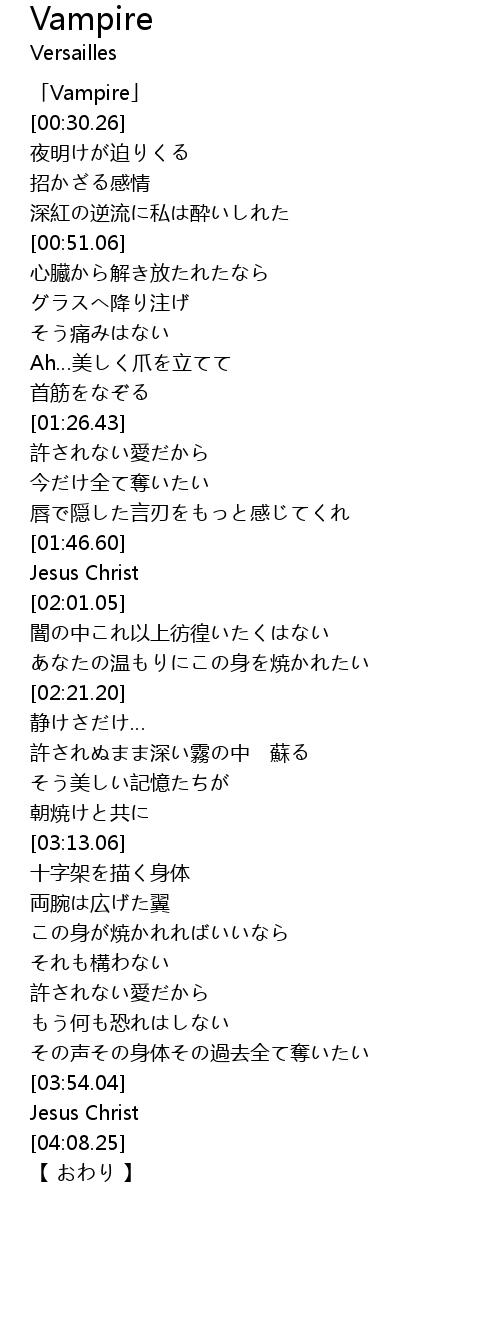 | [00:41.15] | 深紅の逆流に私は酔いしれた |