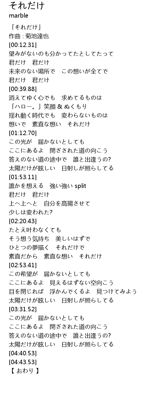 | [02:42.95] | 素直だから 素直な想い それだけ |