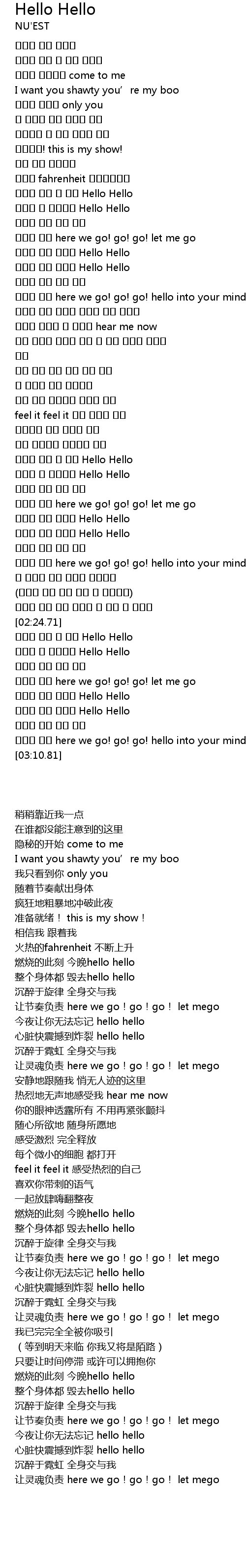 | [02:38.03] | 불타는 지금 이 밤에 Hello Hello |