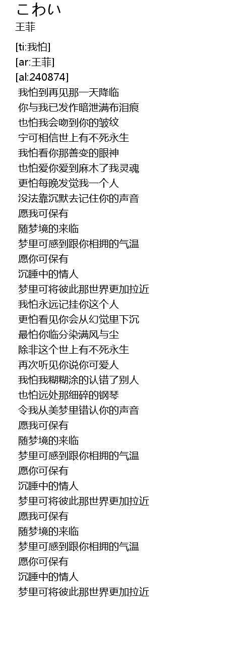 | [00:06.730] | wǒ pà dào zài jiàn nà yì tiān jiàng lín |