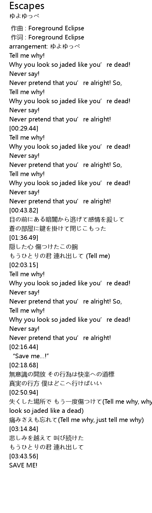 | [03:48.93] | SAVE ME! |