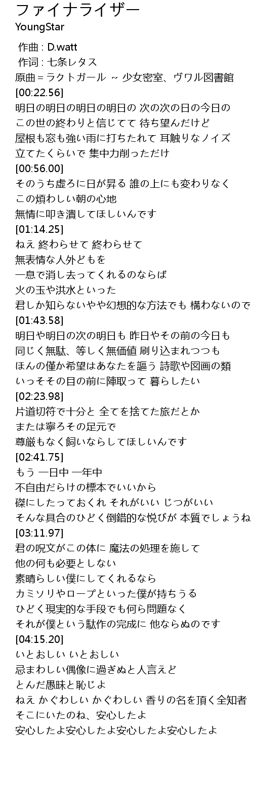| [04:03.55] | それが僕という駄作の完成に 他ならぬのです |