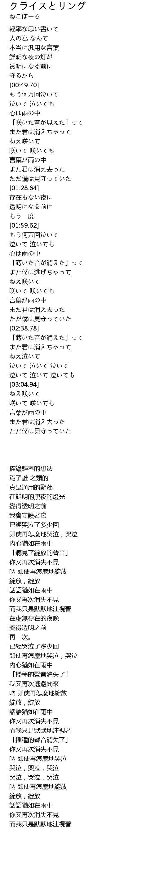 泣いて 泣いて 泣いて |