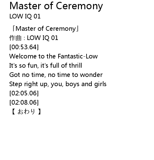 | [00:33.64] | 作曲∶LOW IQ 01 |