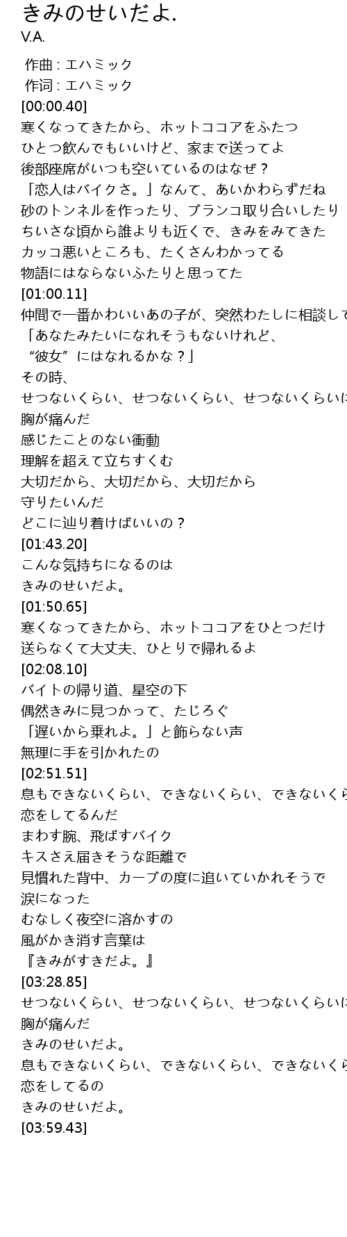 | [03:40.09] | きみのせいだよ。 |