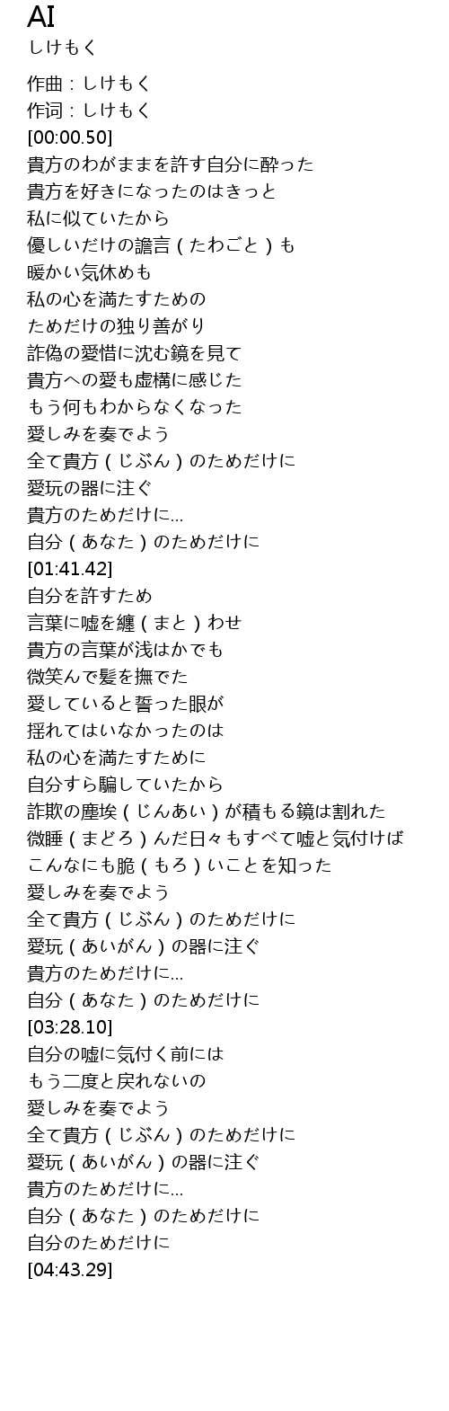 | [03:02.12] | 全て貴方(じぶん)のためだけに |