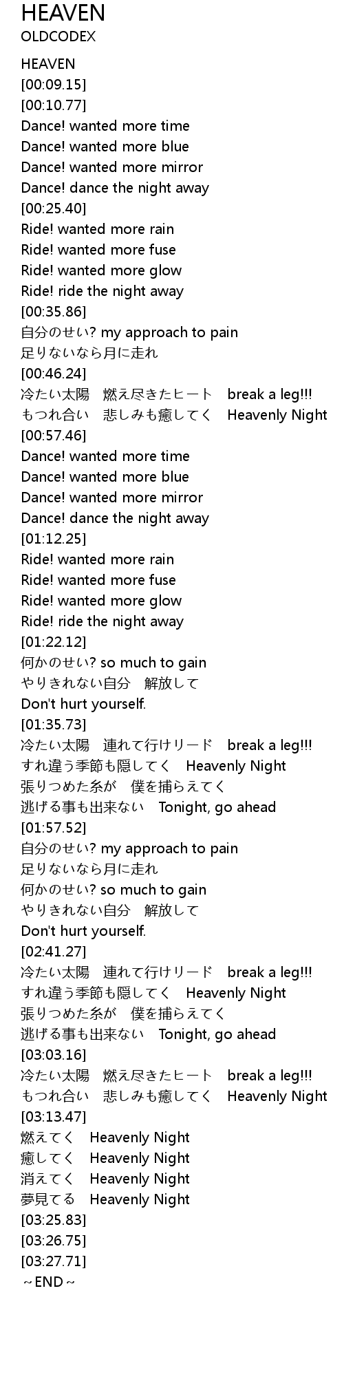 | [00:00.00] | HEAVEN |