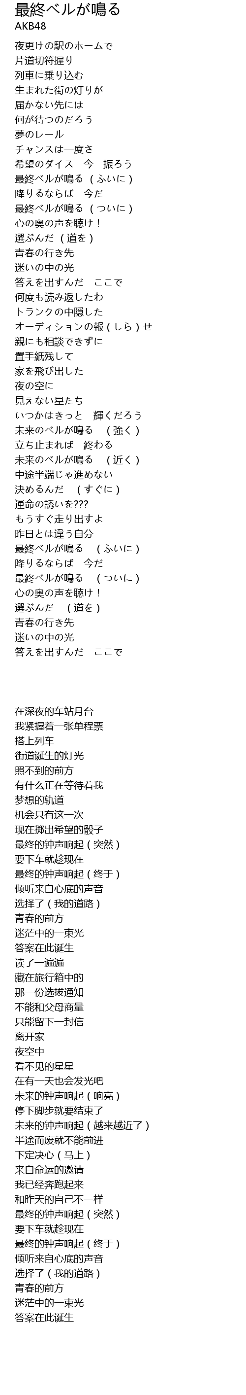 | [01:03.48] | 最終ベルが鳴る (ふいに) |