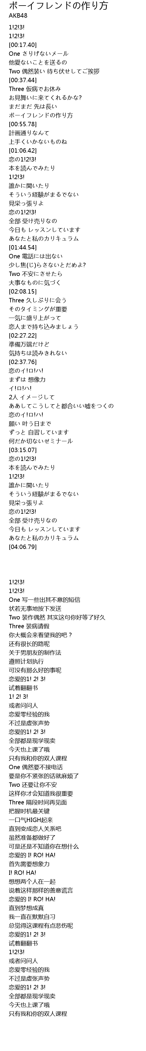 | [00:52.16] | ボーイフレンドの作り方 |
