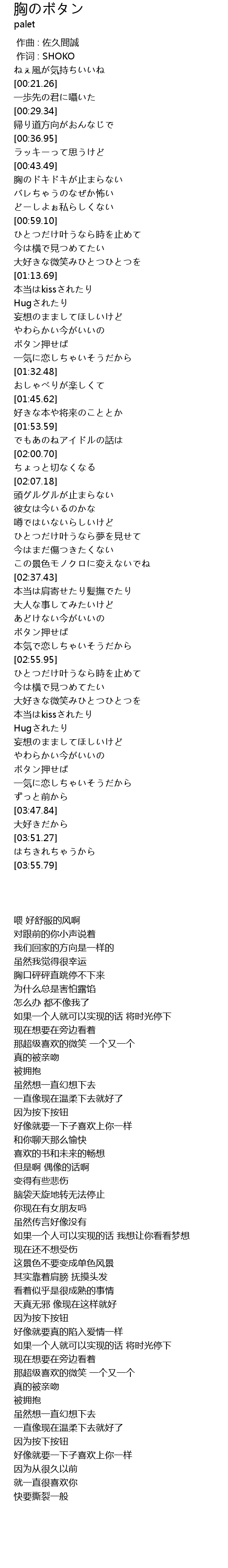 | Song | 胸のボタン |