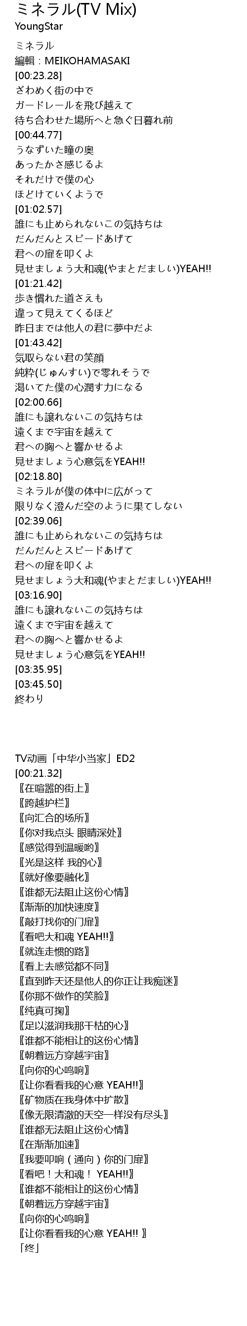 | [02:19.80] | ミネラルが僕の体中に広がって |