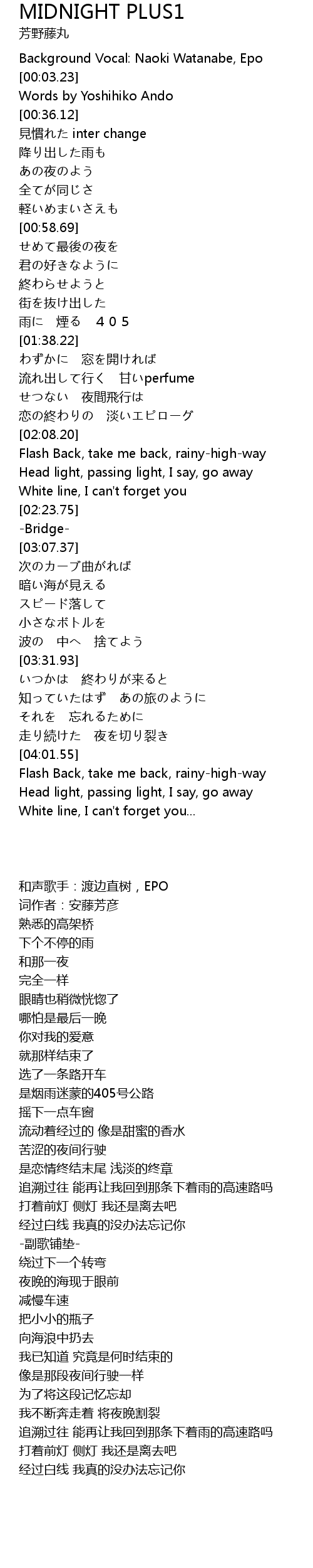 | [00:00.00] | Background Vocal: Naoki Watanabe, Epo |