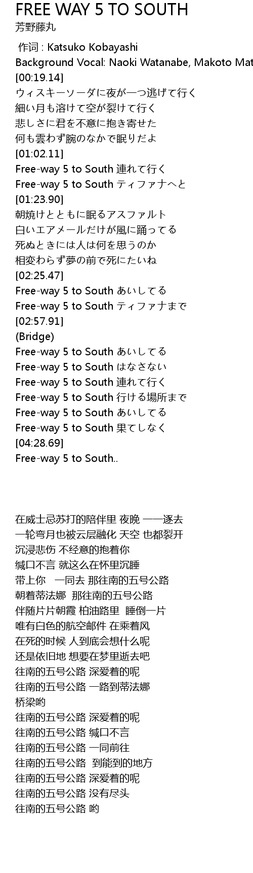 | [04:19.42] | Free-way 5 to South 果てしなく |