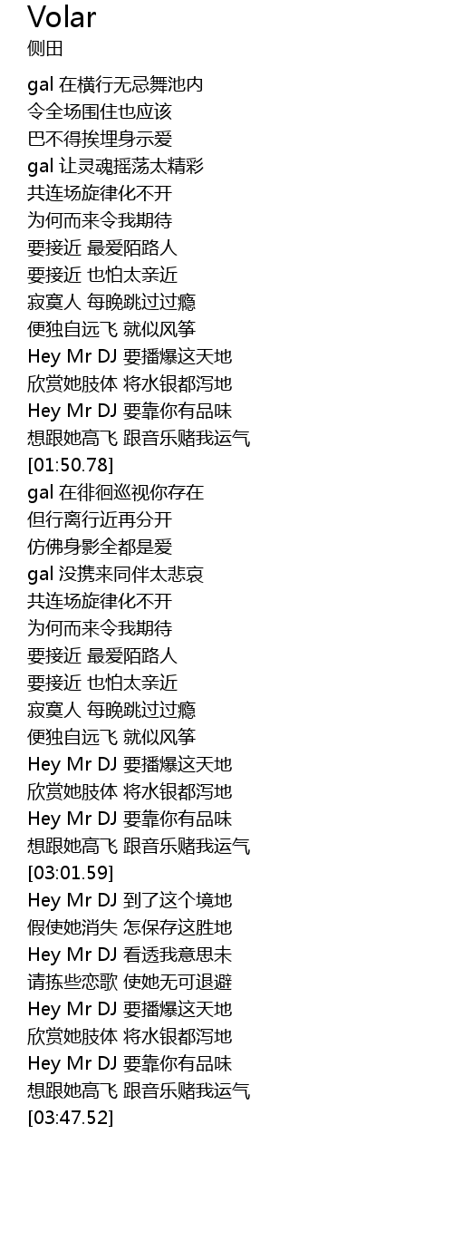 | [03:31.23] | Hey Mr DJ yào bō bào zhè tiān dì |
