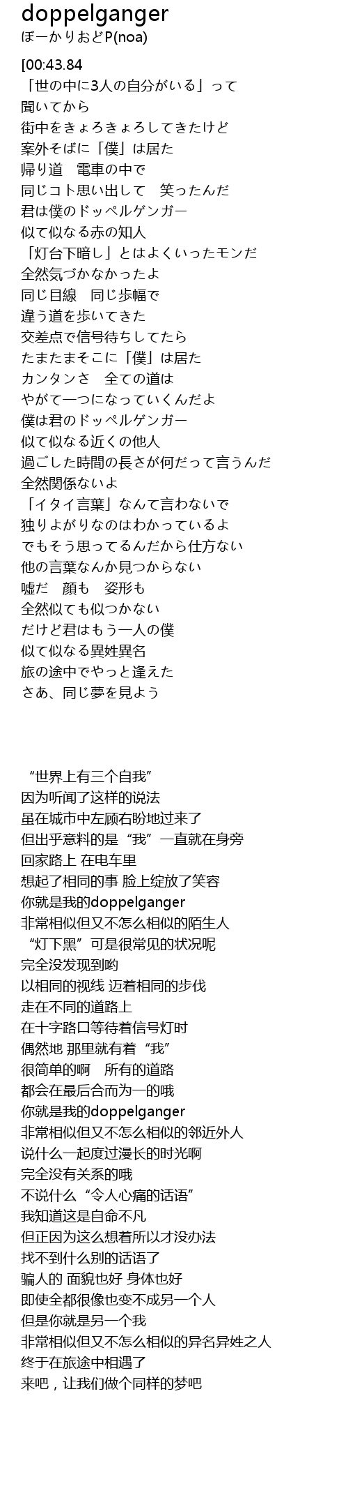 | [00:54.45] | 君は僕のドッペルゲンガー |