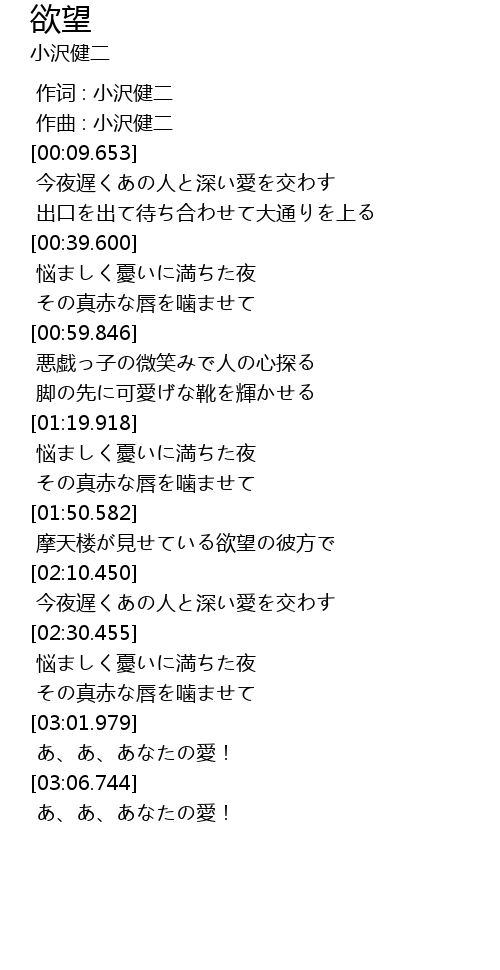 | [00:00.000] | 作词 : 小沢健二 |