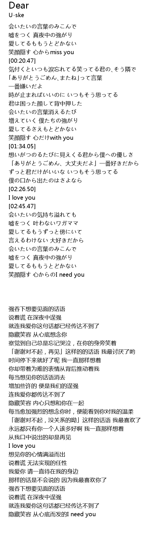 | [03:17.92] | 笑顔隠す 心からのI need you |
