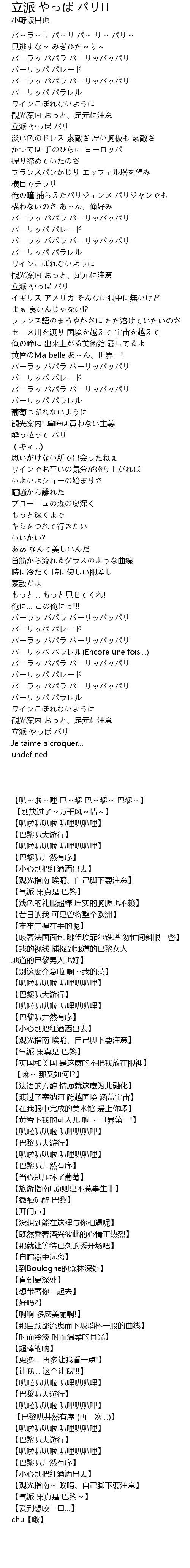 | [00:00.00] | パ~ラ~リ パ~リ パ~ リ~ パリ~ |