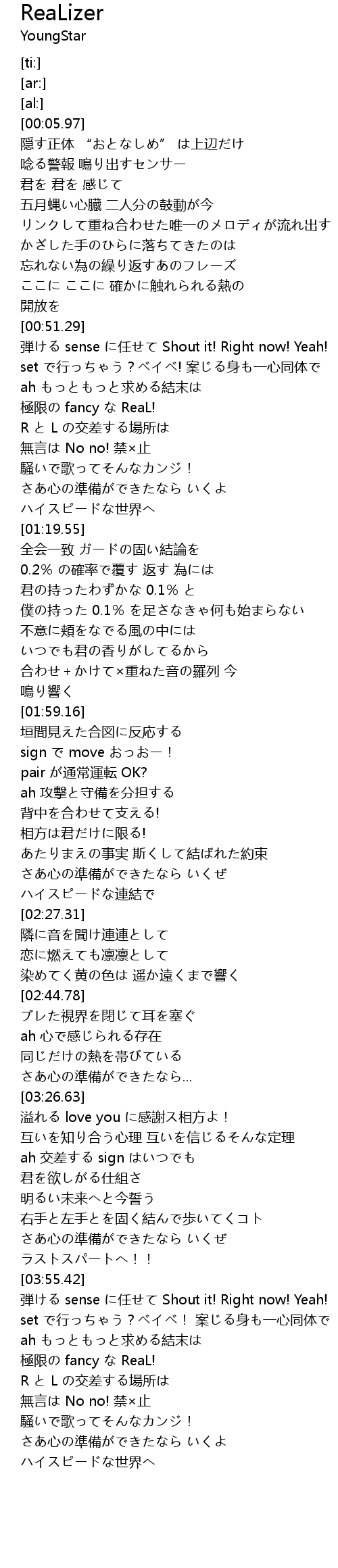 | [01:02.38] | 極限の fancy な ReaL! |