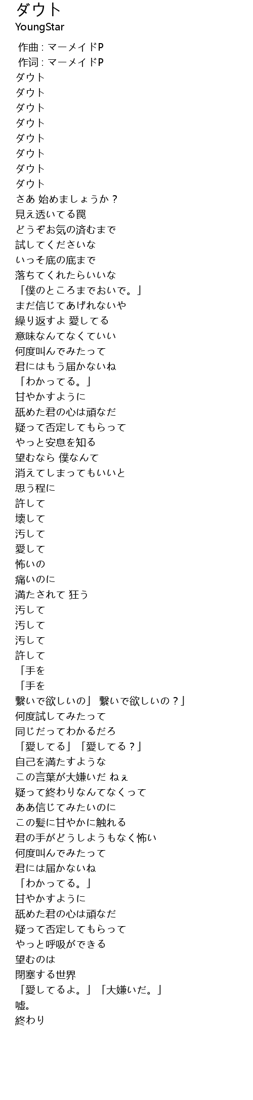| [03:09.44] | 「愛してるよ。」「大嫌いだ。」 |