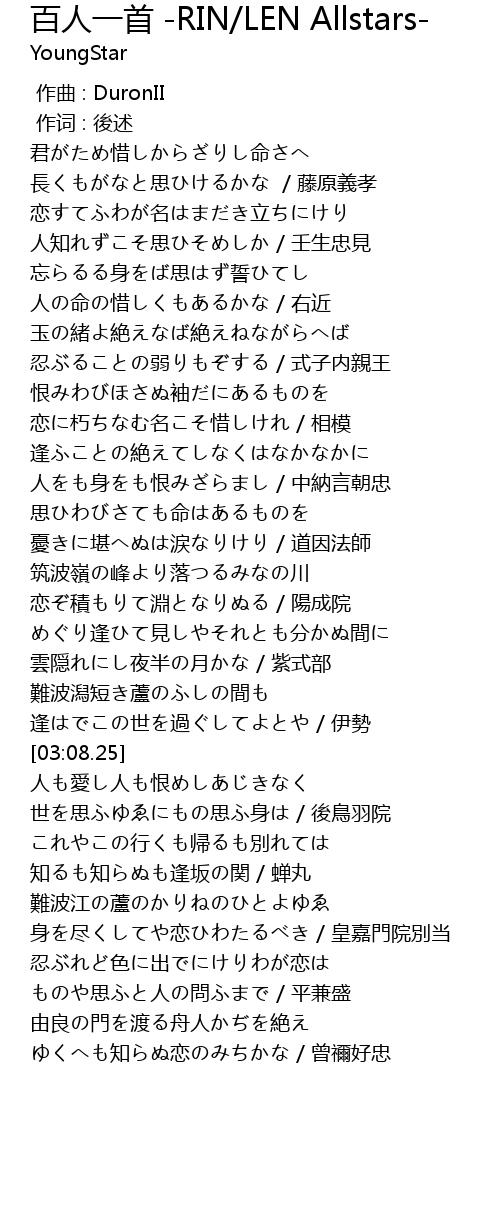 | Song | 百人一首 -RIN/LEN Allstars- |
