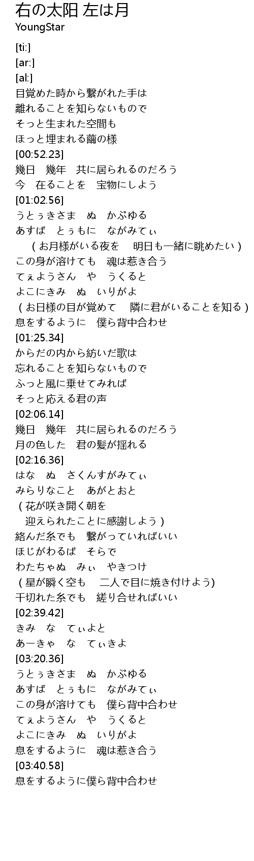 | [00:52.71] | 幾日 幾年 共に居られるのだろう |