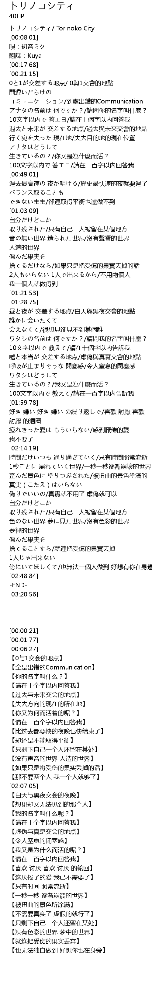 | [00:21.32] | 0と1が交差する地点/ 0與1交會的地點 |