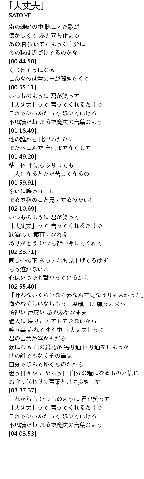 | [03:45.43] | 「大丈夫」って 言ってくれるだけで |