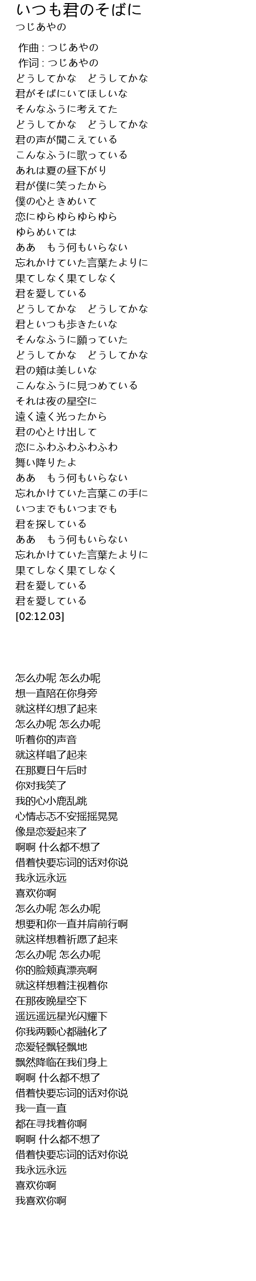 作词 : つじあやの |