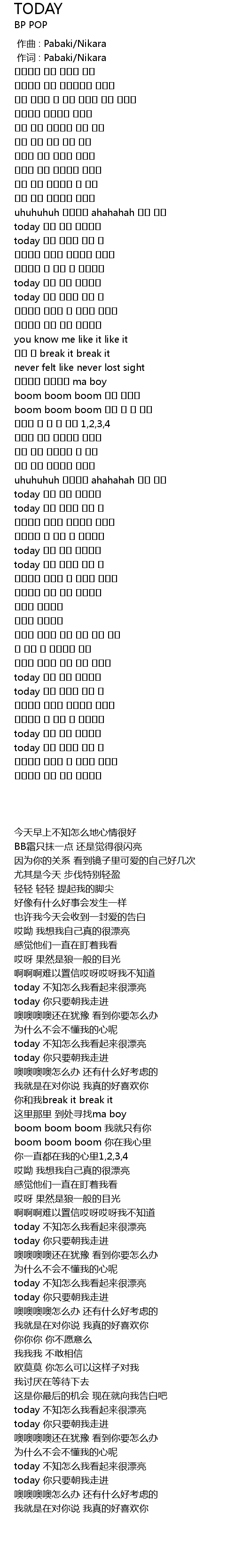 | [03:04.720] | today 왠지 내가 예뻐보여 |
