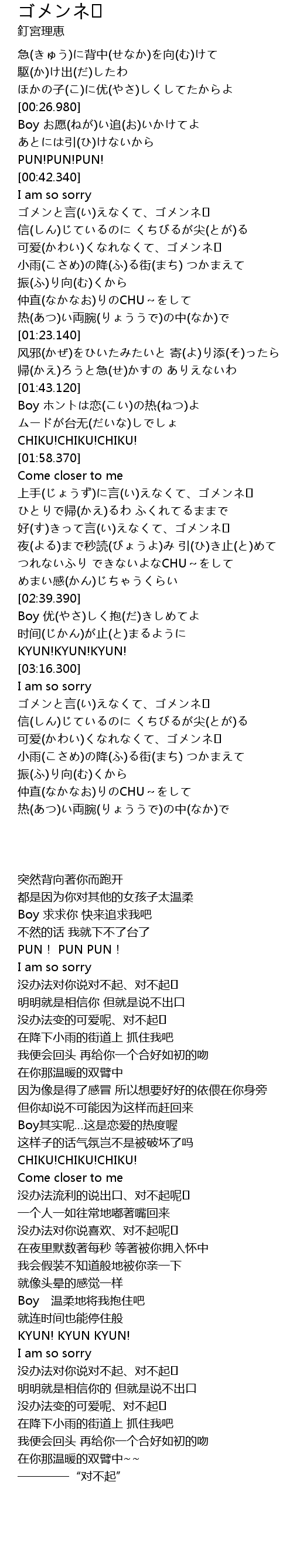 | [00:45.620] | ゴメンと言(い)えなくて、ゴメンネ♥ |