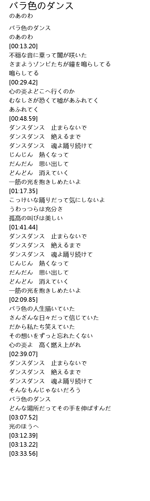 | [03:00.04] | バラ色のダンス |