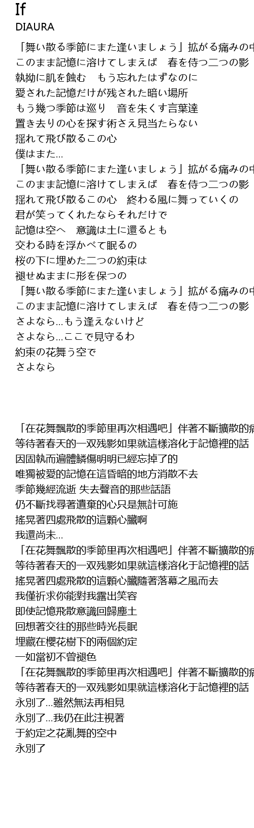 | [01:43.500] | このまま記憶に溶けてしまえば 春を侍つ二つの影 |