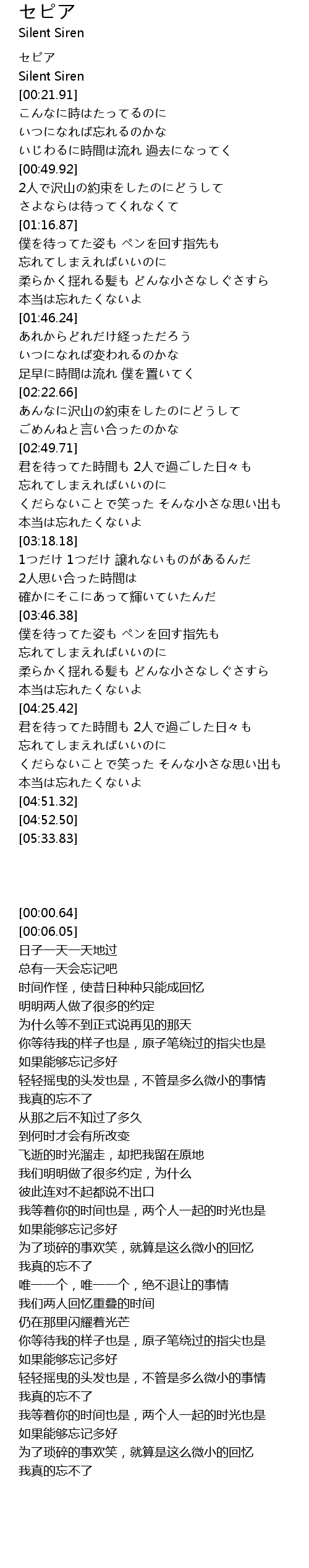 | [04:38.43] | くだらないことで笑った そんな小さな思い出も |