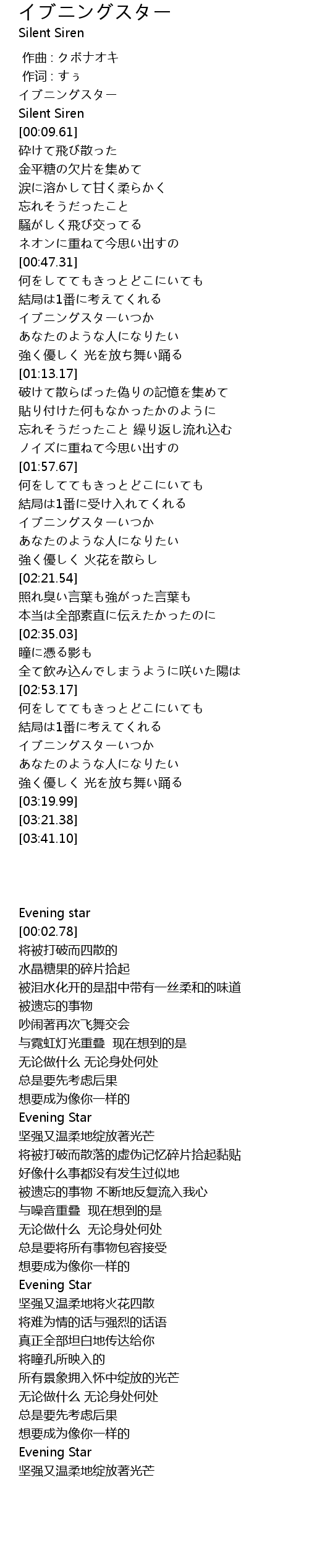 | [03:04.38] | イブニングスターいつか |