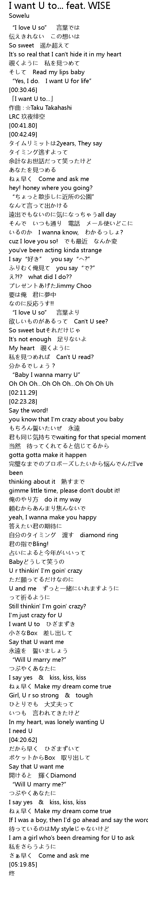 | [00:33.80] | 「I want U to...」 |