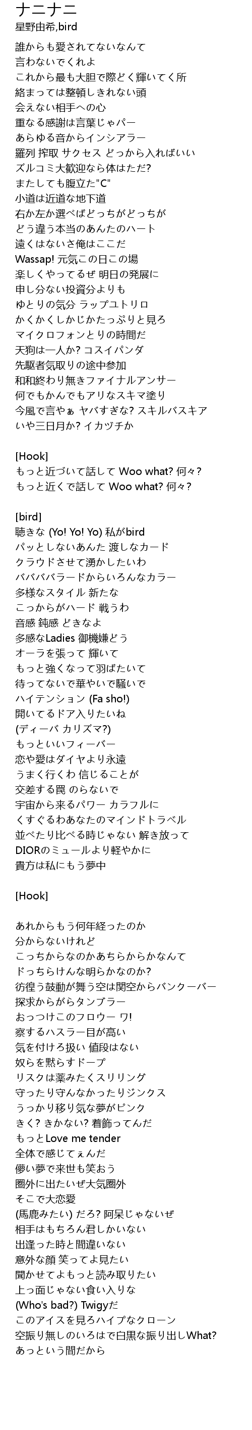 | 聴きな (Yo! Yo! Yo) 私がbird | |