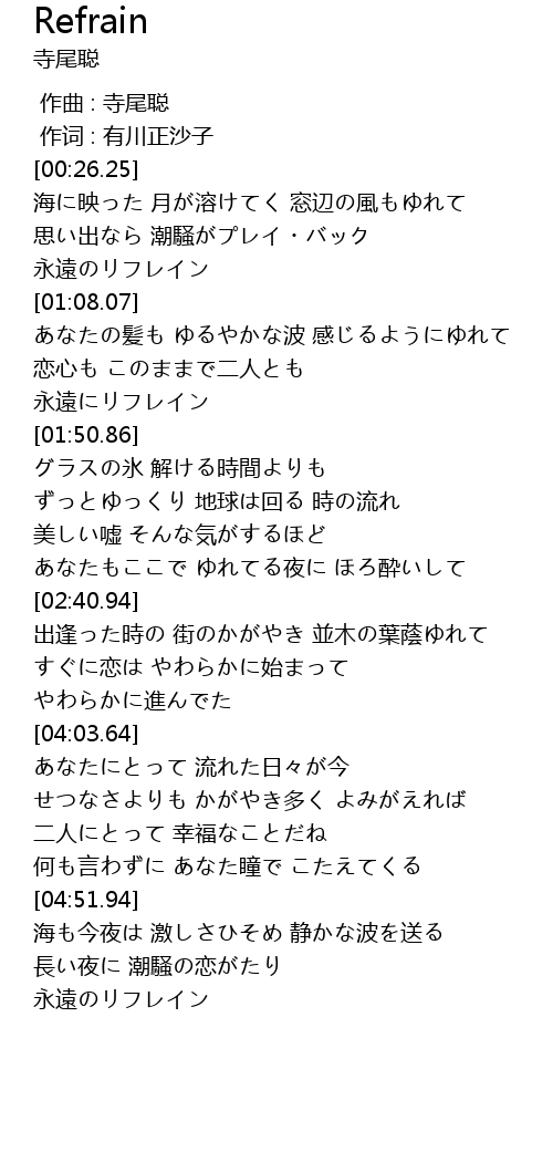 | [00:00.00] | 作曲 : 寺尾聪 |