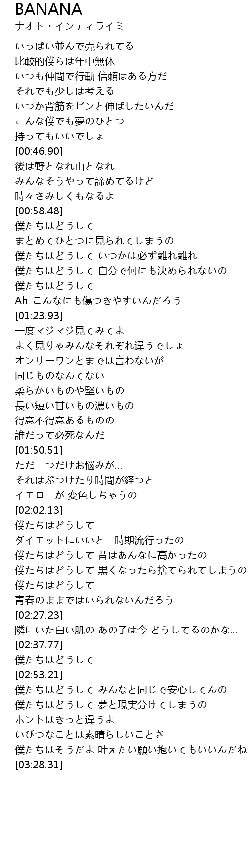 | [00:59.46] | 僕たちはどうして まとめてひとつに見られてしまうの |