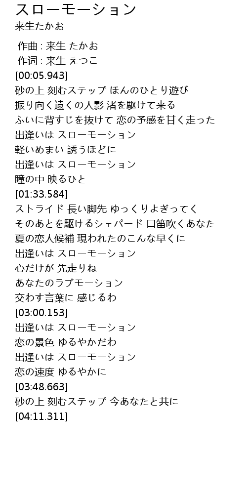 | [01:03.386] | 出逢いは スローモーション |