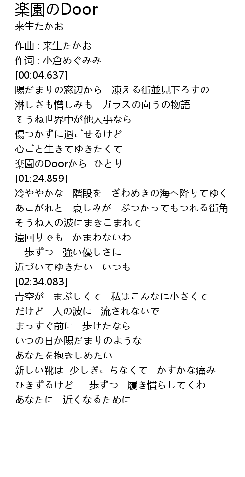 | [00:38.282] | 淋しさも憎しみも ガラスの向うの物語 |