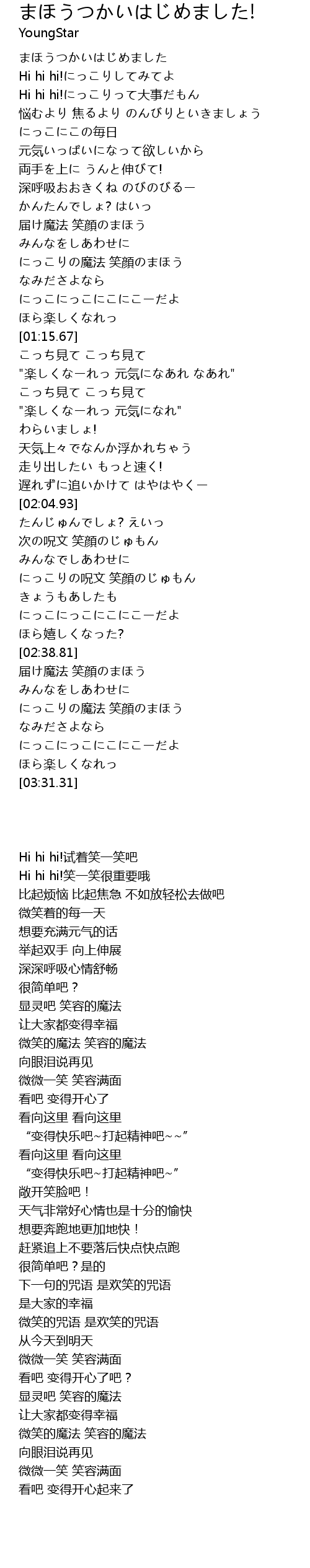 | [02:07.43] | 次の呪文 笑顔のじゅもん |
