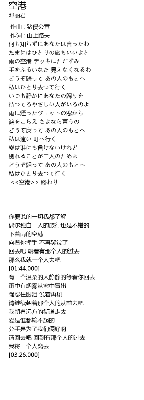| [02:22.000] | どうぞ戾って あの人のもとへ |