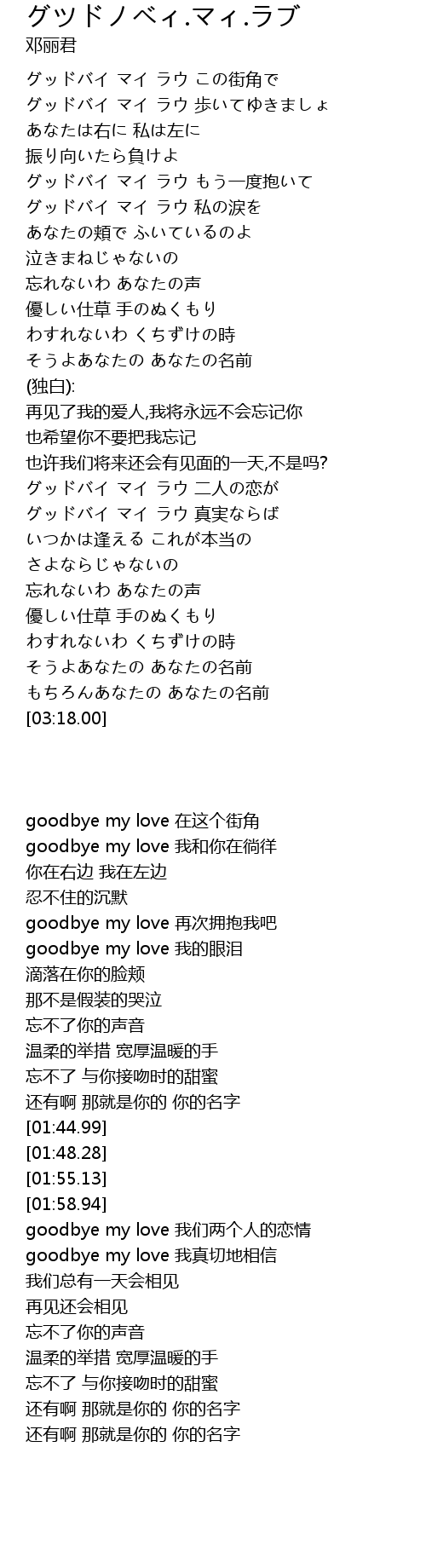 | [00:55.95] | グッドバイ マイ ラウ 私の涙を |